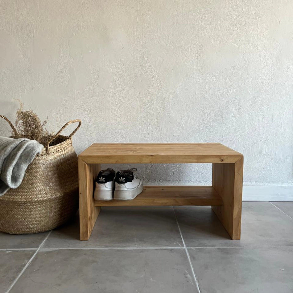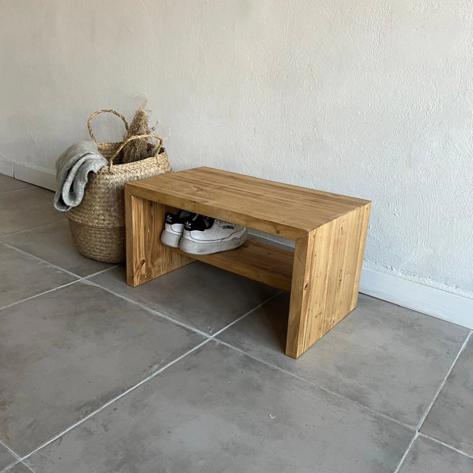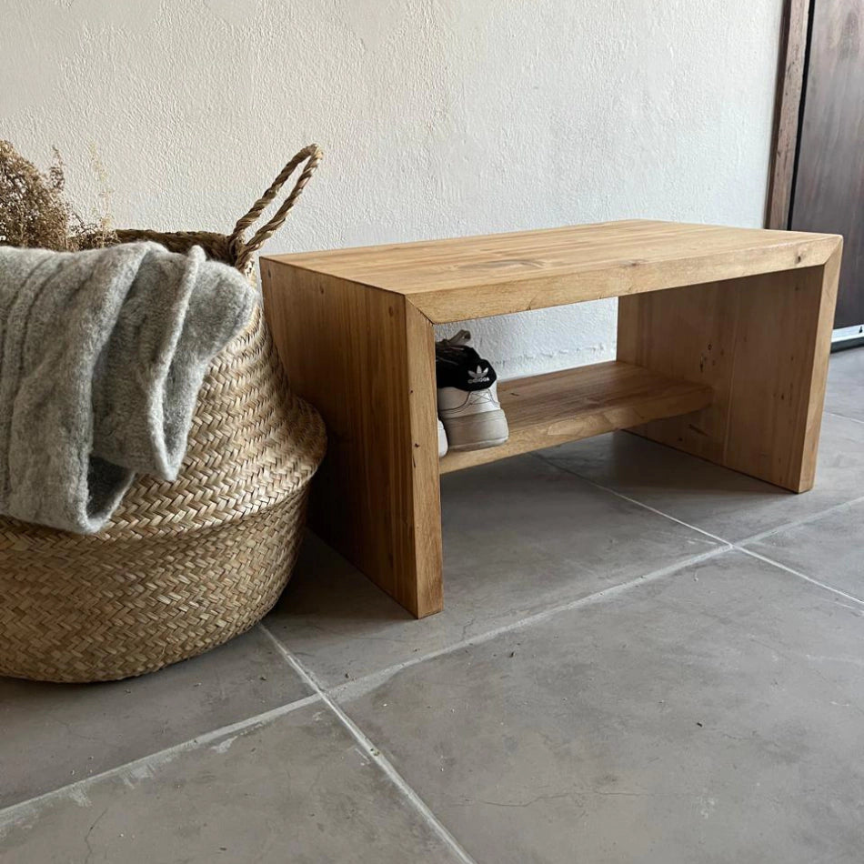 Organiza tu entrada con estilo y funcionalidad. Nuestro banco zapatero de madera maciza combina un diseño minimalista con la calidez natural de la madera, creando un ambiente acogedor y ordenado.